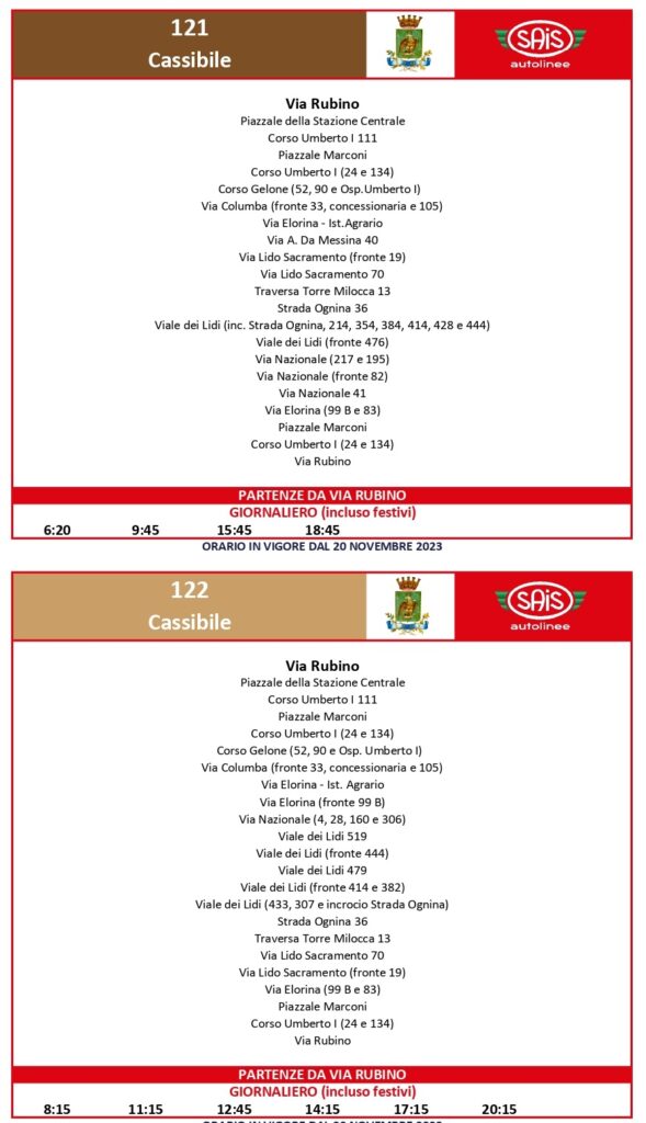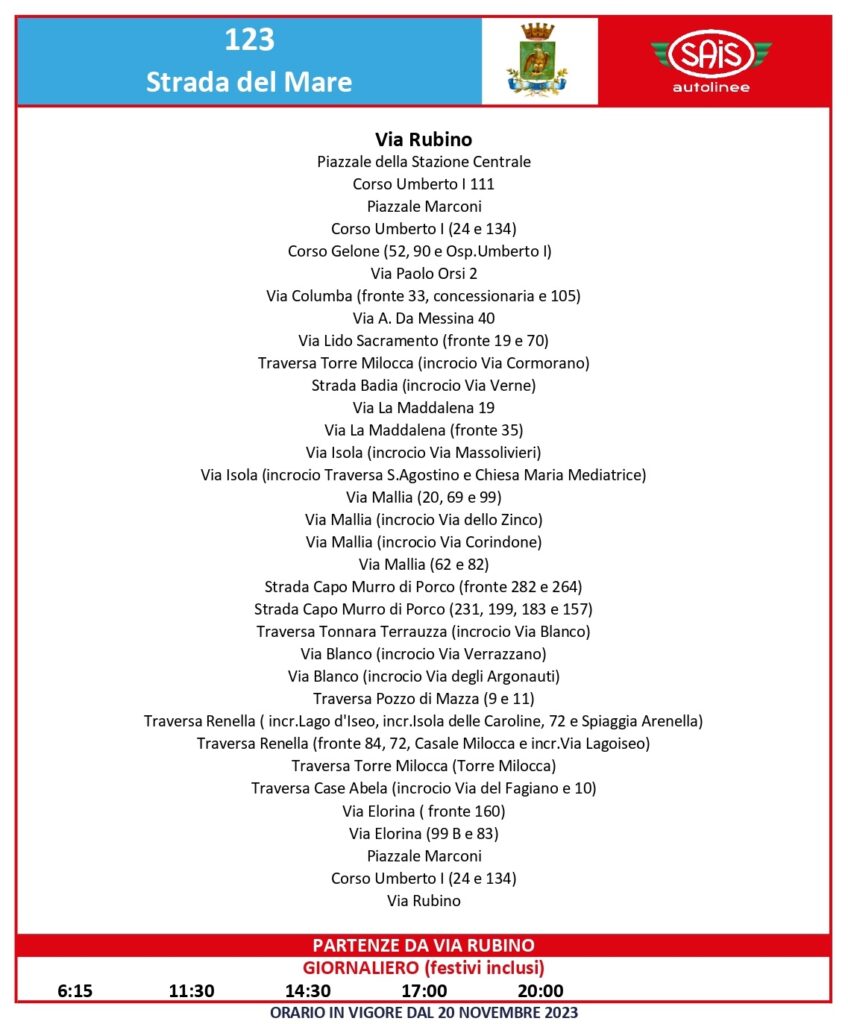 La linea 123 STRADA DEL MARE e le linee 121 e 122 CASSIBILE, collegano le zone balneari alla città di Siracusa. A seguire le tratte, gli orari, e le tariffe attuali